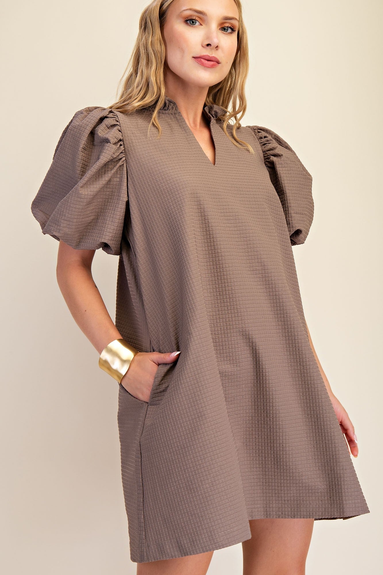 Step out in style with The Rouge Dress. Featuring playful ruffle details and puff sleeves, this chic mini dress adds a flirty touch to your fall wardrobe. Perfect for dressing up at a party, making a statement at work, or enjoying a day around town, it’s your go-to for effortless charm and versatility.